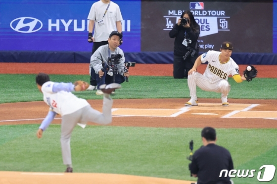 '원조 코리안 메이저리거' 박찬호(51)가 사상 최초로 한국에서 펼쳐지는 메이저리그 경기의 시구자로 나섰다. 박찬호는 시구에 앞서 열린 공식 기자회견에서 감개무량한 소감을 밝혔다.
