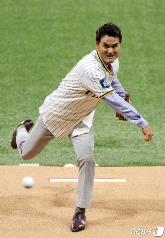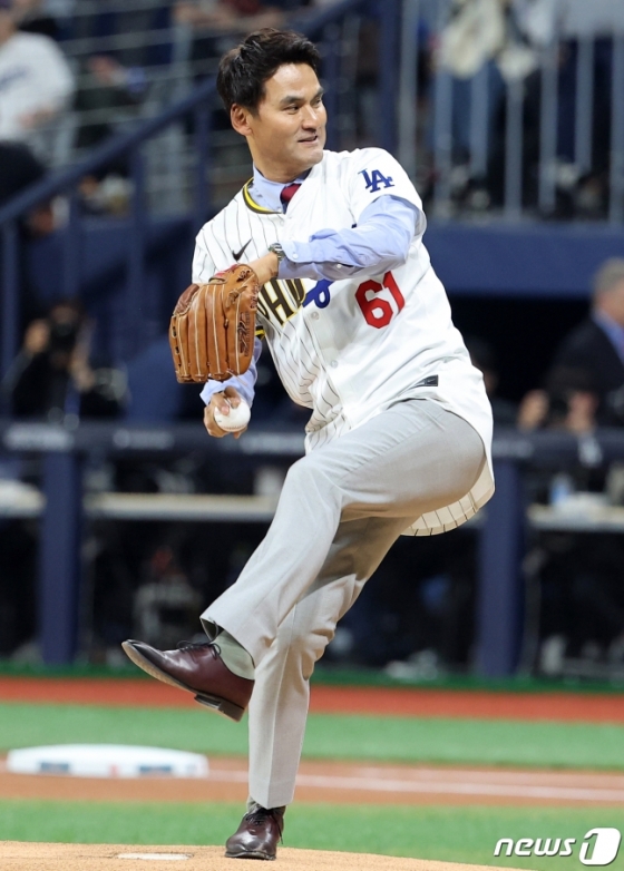 박찬호는 20일 오후 7시 7분 서울 고척스카이돔에서 열리는 LA 다저스와 샌디에이고 파드리스의 2024 미국 프로야구 메이저리그(MLB) 월드투어 서울시리즈 개막전의 시구자로 선정돼 시구를 펼쳤다.