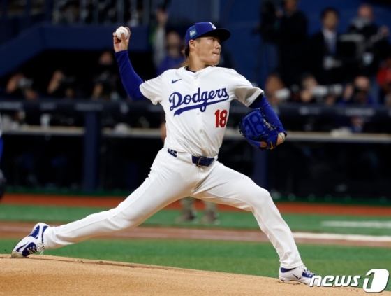야마모토는 21일(한국시간) 서울 고척스카이돔에서 펼쳐진 샌디에이고 파드리스와 2024 미국 프로야구 메이저리그(MLB) 월드투어 서울시리즈 2차전에 선발 등판, 1이닝 동안 4피안타 1볼넷 2탈삼진 5실점(5자책)으로 무너졌다. 야마모토의 평균자책점은 45.00으로 폭등했다. 이날 야마모토의 총 투구수는 43개. 그 중 스트라이크는 절반이 조금 넘는 23개였다.