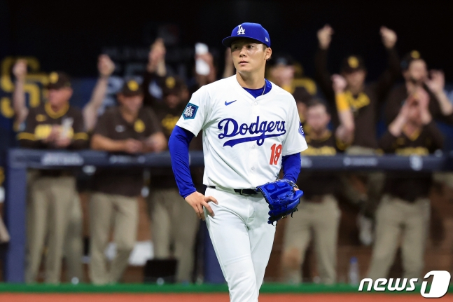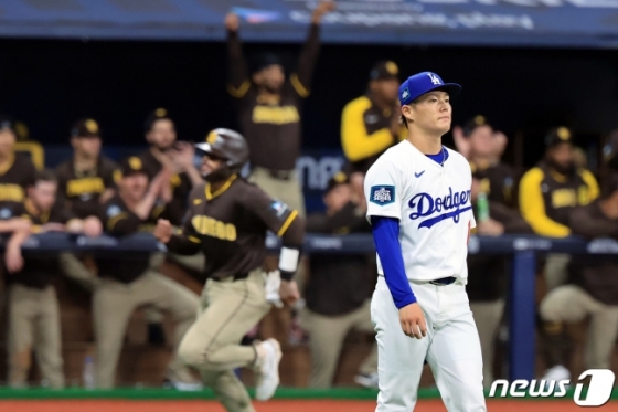 야마모토는 1회초부터 그야말로 난타를 당했다. 선두타자 잰더 보가츠에게 좌전 안타를 허용하며 어렵게 출발한 야마모토. 다음 타자 페르난도 타티스 주니어를 상대로 몸쪽으로 붙인다는 게 그만 몸을 맞히고 말았다. 순식간에 무사 1, 2루 위기에 몰린 야마모토. 이어 제이크 크로넨워스가 우측 담장으로 굴러가는 2타점 적시 3루타를 작렬시키며 2-0을 만들었다.