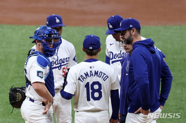 시범경기 때 지적받은 단점을 끝내 고치지 못한 모습이었다. 야마모토는 1이닝(43구) 4피안타 1볼넷 2탈삼진 5실점의 충격적인 투구로 LA 다저스 첫 경기부터 패전 투수가 됐다. 전날(20일) 5타수 2안타 1타점 1도루로 팀의 5-2 역전승을 이끌었던 오타니도 이날 4타수 1안타 1타점 1득점에 그치며 팀 패배를 막지 못했다.