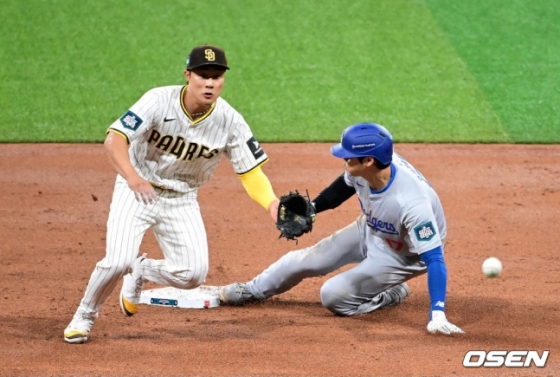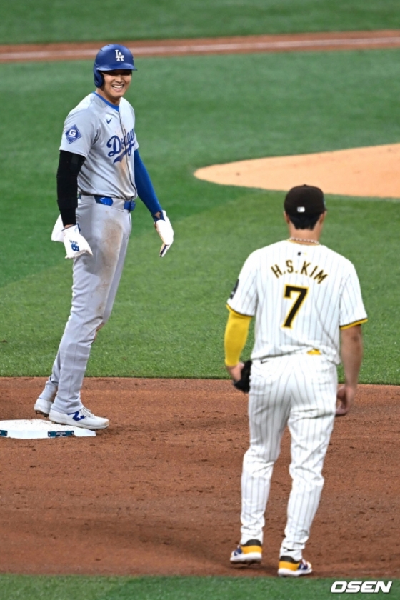 대표적인 것이 3회 초 2사에서 오타니가 2루에 도달한 순간이었다. 올 시즌을 앞두고 10년 7억 달러(약 9324억 원) FA 계약을 체결한 오타니는 깨끗한 타구로 LA 다저스에서의 첫 안타를 신고했다. 곧바로 2루를 훔쳤고 커버를 들어온 김하성과 만났다. 이때 중계화면에 잡힌 오타니의 입 모양은 '안녕하세요'로 읽혔는데 경기 후 확인 결과 그것이 맞았다. 이때 김하성도 약간 놀란 듯하면서도 웃으며 이야기를 나눠 훈훈한 장면을 연출했다.