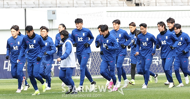 공격수로는 손흥민을 비롯해 주민규, 정우영(슈투트가르트)가 선발 출격한다. 이재성(마인츠), 백승호(버밍엄시티), 황인범(츠르베나 즈베즈다)은 중앙 미드필더를 맡는다. 수비진은 김진수(전북현대), 김민재(바이에른 뮌헨), 김영권(울산HD), 설영우(울산HD)로 구성됐다. 골문은 조현우(울산HD)가 지킨다. 포메이션은 4-4-2가 될 전망이다.