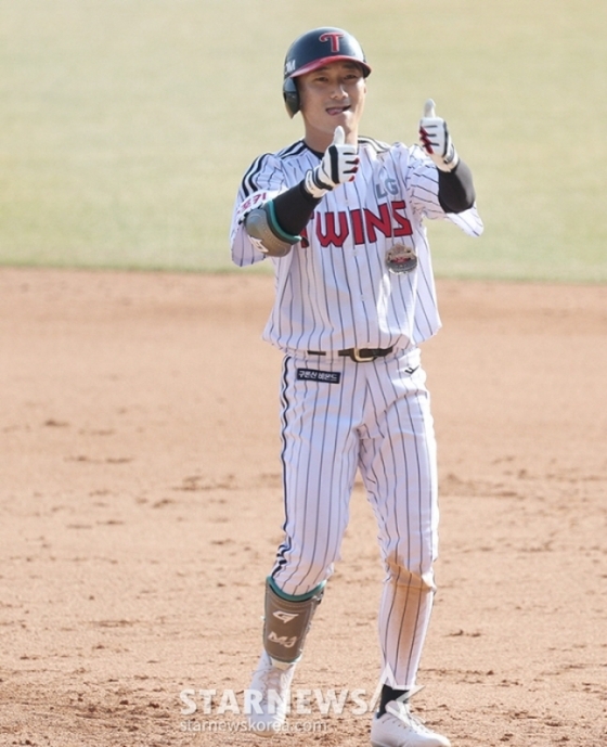 운도 따랐다. 4회말엔 2사 1루에서는 류현진의 커브를 공략한 타구가 2루수에게 흘러갔는데 문현빈이 포구에 실패하며 2번째 출루에 성공했다.이후 홍창기의 안타 때 홈을 밟기까지 했다.