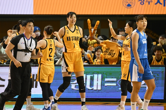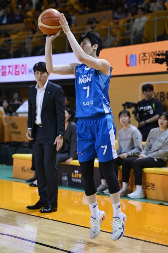 쿼터 초반 박지수가 최이샘의 골밑슛을 블록슛해 홈팬들의 환호를 자아냈다. 이어 식스맨 이윤미까지 외곽포를 터뜨리며 우리은행의 추격 의지에 찬물을 끼얹었다.