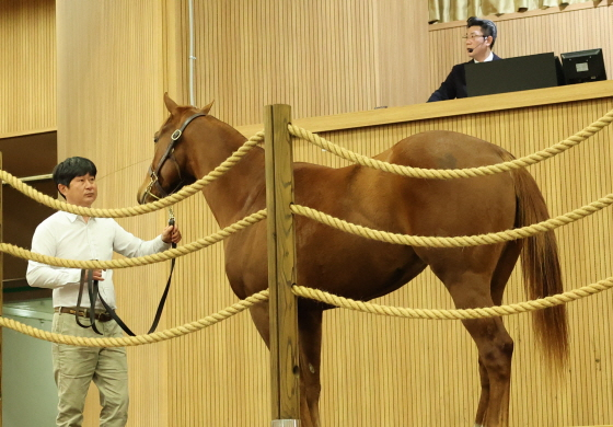 한국마사회 제주목장에 위치한 한국경주마생산자협회 경매장에서 올해 첫 2세 경주마 경매가 개최됐다.