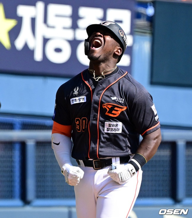 6회말 다시 한 번 페라자의 방망이가 불을 뿜었다. 팀이 2-1 불안한 리드로 앞서 있던 무사 주자 없는 상황에서 타석에 오른 페라자는 이번엔 초구부터 거침없이 배트를 휘둘렀다. 시속 110.9㎞ 느린 커브를 제대로 강타, 앞선 타구와 달리 22.2도의 낮은 탄도로 다시 한 번 우측 담장을 넘겼다. 시즌 1호이자 KBO 통산 1171번째 연타석 홈런 기록이다.