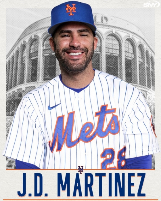 지난 22일(한국시간) 베테랑 우타자 J.D. 마르티네스(37)는 뉴욕 메츠와 1년 1200만 달러(약 161억 원) 계약을 맺었다. 미국 매체 MLB 네트워크의 존 헤이먼에 따르면 250만 달러(약 33억 원)의 계약금을 제외하면 일부 디퍼 계약(총액을 일정 시점 이후 나눠서 받는 것)이 포함돼 있다.