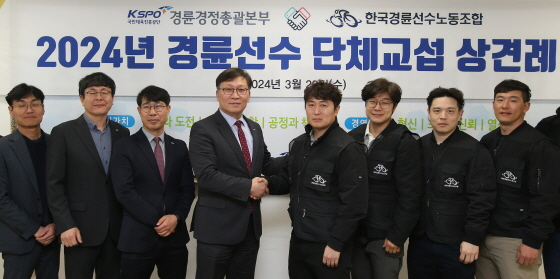 국민체육진흥공단 경륜경정총괄본부는 지난 20일 하남 미사리 경정장 회의실에서 한국경륜선수노동조합과 2024년 단체교섭 상견례를 가졌다.