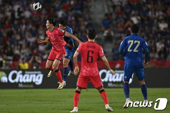 전반전부터 태국은 한국을 강하게 몰아쳤다. 발이 빠른 선수들을 앞세워 한국 수비진을 괴롭혔다. 후방 빌드업부터 방해하려는 움직임이었다. 전반 2분 만에 포문도 열었다. 슈팅은 골문 위로 벗어났다.