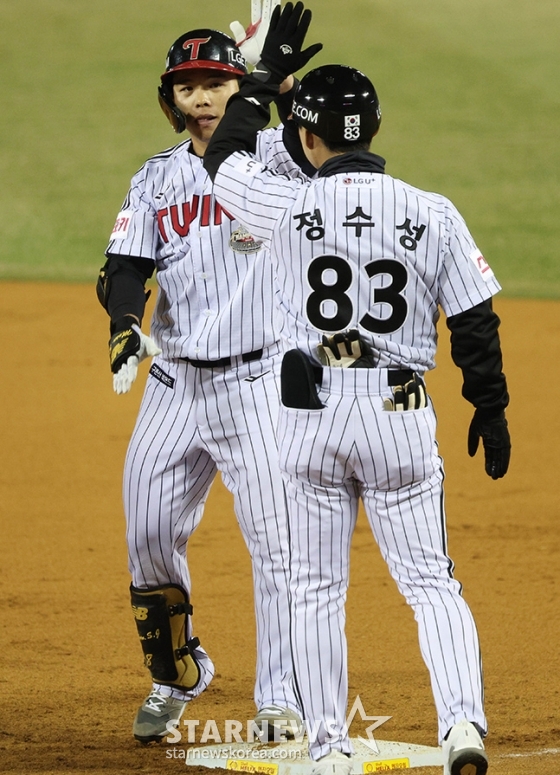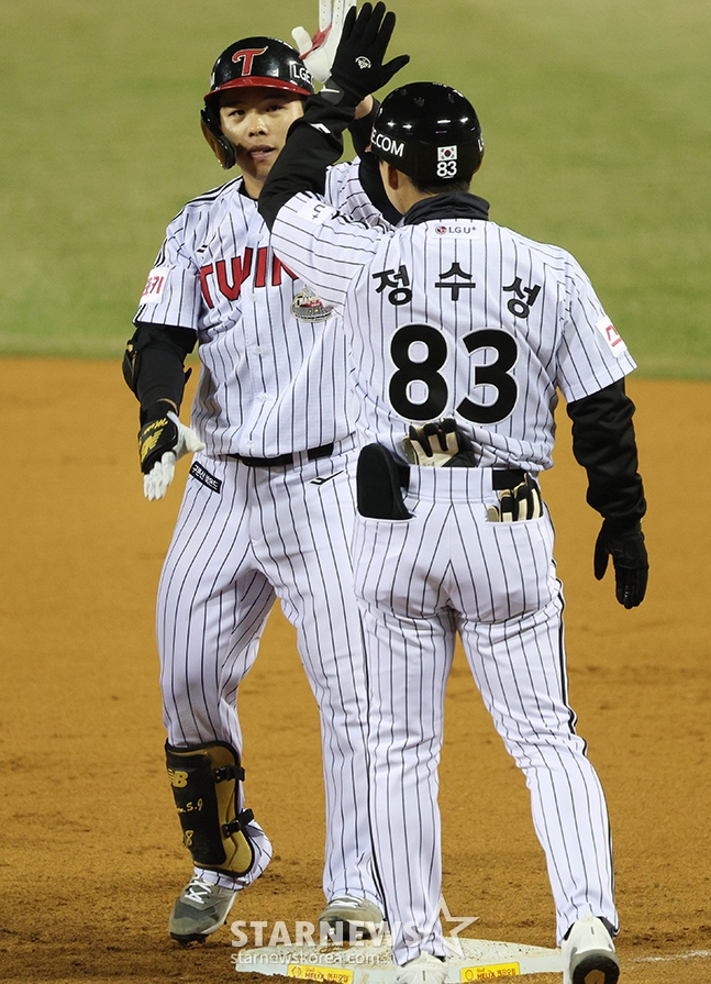 스포츠야구[포토] 문성주 '당췌 두렵지가 않아요'발행 : 2024.03.27 ・ 20:44잠실=김진경 대기자'2024 신한 SOL 뱅크 KBO리그' LG-삼성전이 27일 서울 잠실야구장에서 열렸다.LG 문성주가 6회말 동점 적시타를 날리고 출루한 후 정수성 코치와 기뻐하고 있다. / 잠실=김진경 기자<저작권자 © 스타뉴스, 무단전재 및 재배포 금지>프로야구LG삼성백정현국민의례켈리추천 기사김진경 대기자기자홈좋아요 스포츠-야구의 인기 급상승 뉴스스포츠-야구의 최신 뉴스
