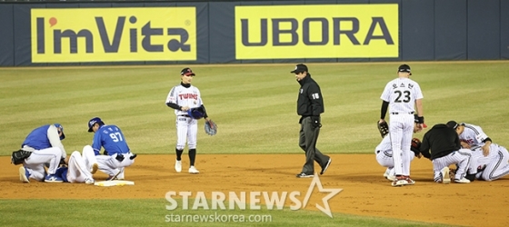 그런데 류지혁과 오지환 모두 충돌한 뒤에 서로 일어서지 못하며 괴로워하고 있었다. 삼성과 LG의 코칭스태프와 트레이너가 모두 나와 류지혁과 오지환을 살폈다. 이어 삼성에서는 류지혁이 더 이상 뛰기 어렵다는 'X' 사인이 들어갔다. 오지환은 다행히 일어선 뒤 류지혁의 상태를 살폈다. 이내 구급차가 그라운드로 들어왔다. 류지혁은 더 이상 뛰지 못한 채 들것에 실린 채로 구급차에 탑승했다. 오지환은 구급차로 다가가 류지혁에게 무언가 말을 건네며 걱정하는 모습을 보이기도 했다. 결국 류지혁은 대주자 강한울로 교체됐다. 류지혁은 구급차에 탄 채로 인근 병원으로 향했다.