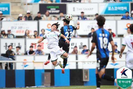 대전도 후반 13분 호사의 헤더슈팅, 후반 16분 골키퍼와 일대일로 맞선 김인균의 슈팅도 골대를 살짝 넘어갔다. 인천은 제르소의 빠른 스피드를 앞세워 역습에 나섰다. 후반 22분 좋은 찬스가 있었지만 골문 앞 마무리가 되지 않았다. 2분 뒤에는 인천 김성민이 저돌적인 슈팅을 선보였다. 대전은 안톤, 심상은까지 투입해 분위기를 바꾸려고 노력했다.