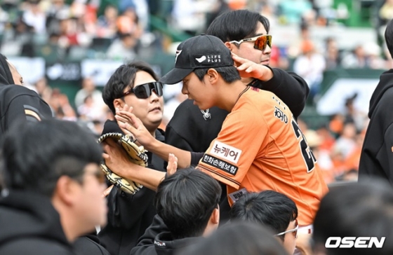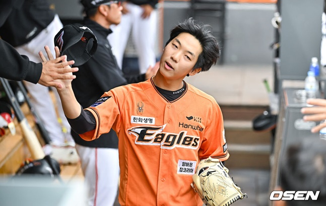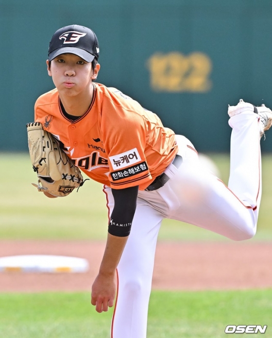 금세 다시 안정을 찾았다. 배정대에게 유격수 뜬공을 유도한 황준서는 다시 만난 천성호에게도 힘 없는 투수 땅볼을 유도했다. 다만 운이 따르지 않았다. 부족한 경험은 수비에서 나타났다. 타구를 잘 잡아낸 황준서가 1루에 던진 공이 타자주자 방향으로 향했고 1루수 채은성이 공을 놓쳤다. 순식간에 1사 1루가 돼야 할 상황이 1사 1,3루가 됐다.