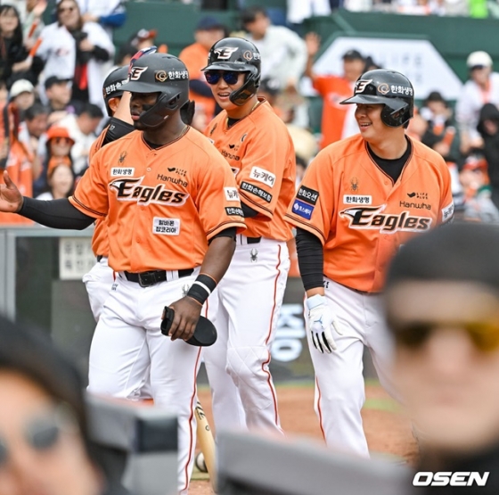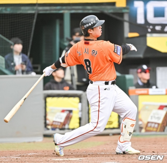 최재훈이 몸에 맞는 공으로 출루했고 이날 하주석을 대신해 최원호 감독의 선택을 받은 이도윤-문현빈-페라자-채은성까지 연속으로 벤자민을 두들겼다. 노시환이 방점을 찍었다. 전날까지 홈런 2개를 날리고도 타율 0.160(25타수 4안타)으로 아쉬움을 남겼던 노시환은 벤자민의 몸쪽 시속 140㎞ 커터를 잡아당겨 좌측 담장을 넘기는 투런포를 날렸다. 시즌 3번째 홈런.