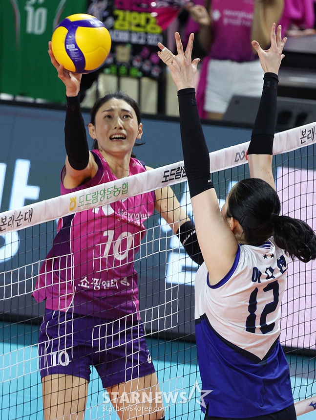 스포츠일반[포토] 김연경 '아야 다칠라'발행 : 2024.04.01 ・ 20:50인천=김진경 대기자2023-2024시즌 도드람 V리그 여자배구 챔피언 결정전 3차전 현대건설 대 흥국생명 전이 1일 오후 인천삼산월드체육관에서 열렸다.흥국생명 김연경이 현대건설 이다현의 블로킹 위로 강스파이크를 날리고 있다. / 인천=김진경 기자<저작권자 © 스타뉴스, 무단전재 및 재배포 금지>김연경배구여자배규챔피언결정전인천흥국셍명추천 기사김진경 대기자기자홈좋아요 스포츠-일반의 인기 급상승 뉴스스포츠-일반의 최신 뉴스