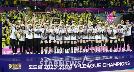 스포츠일반[포토] 현대건설 '드디어 우승'발행 : 2024.04.01 ・ 22:32인천=김진경 대기자2023-2024시즌 도드람 V리그 여자배구 챔피언 결정전 3차전 현대건설 대 흥국생명 전이 1일 오후 인천삼산월드체육관에서 열렸다.우승을 차지한 현대건설 선수들이 시상식에서 포즈를 취하고 있다. / 인천=김진경 기자<저작권자 © 스타뉴스, 무단전재 및 재배포 금지>김연경배구여자배규챔피언결정전인천흥국셍명추천 기사김진경 대기자기자홈좋아요 스포츠-일반의 인기 급상승 뉴스스포츠-일반의 최신 뉴스