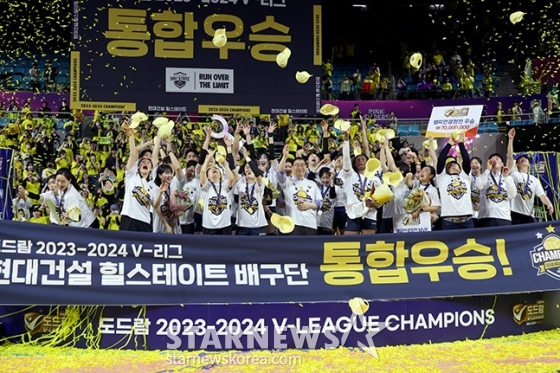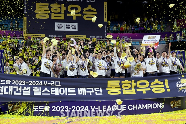 스포츠일반[포토] 현대건설 '통합우승의 기쁨'발행 : 2024.04.01 ・ 22:39인천=김진경 대기자2023-2024시즌 도드람 V리그 여자배구 챔피언 결정전 3차전 현대건설 대 흥국생명 전이 1일 오후 인천삼산월드체육관에서 열렸다.우승을 차지한 현대건설 선수들이 시상식에서 포즈를 취하고 있다. / 인천=김진경 기자<저작권자 © 스타뉴스, 무단전재 및 재배포 금지>김연경배구여자배규챔피언결정전인천흥국셍명추천 기사김진경 대기자기자홈좋아요 스포츠-일반의 인기 급상승 뉴스스포츠-일반의 최신 뉴스