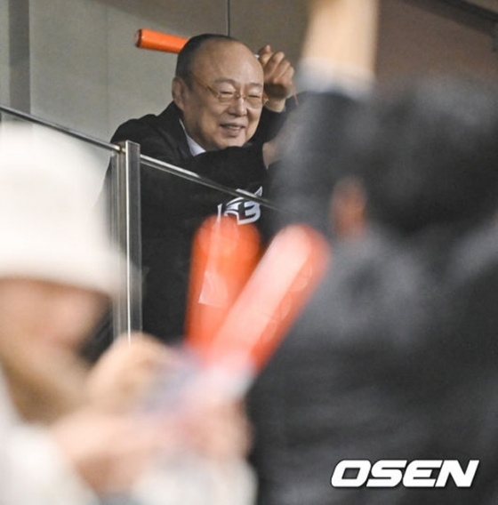 지난 3월 29일 한화의 김승연(72) 회장은 지난 2018년 플레이오프 1차전 이후 처음으로 대전 한화생명이글스파크를 찾았다. 한화 이글스 선수들의 선전을 하자 김 회장은 웃음을 지었고 엄지를 치켜세우기도 했다.