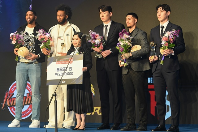 강상재는 MVP를 놓쳤지만, 베스트5에 들어 아쉬움을 달랬다. 강상재를 비롯해 알바노, 디드릭 로슨 등 5명 중 DB 선수가 3명이나 선발됐다. 이와 함께 이정현(고양 소노), 패리스 배스(수원 KT)가 이름을 올렸다.