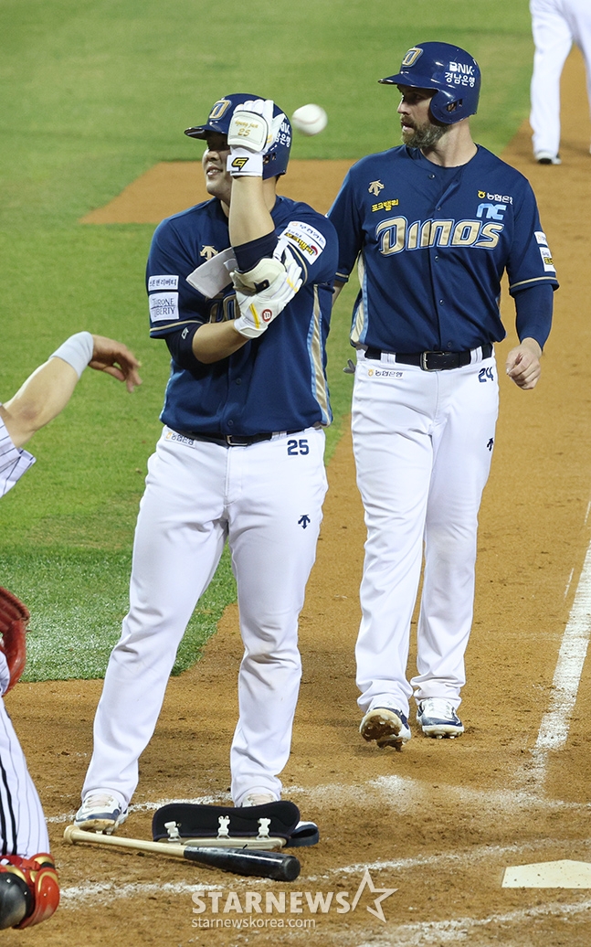 스포츠야구[포토] 데이비슨-김형준 '웃어도 괜찮아'발행 : 2024.04.02 ・ 21:17잠실=김진경 대기자'2024 신한 SOL 뱅크 KBO리그' LG-NC전이 2일 서울 잠실야구장에서 열렸다.NC 7회초 2사 만루에서 3루주자 데이비슨이 김형준이 밀어내기 볼넷을 고르자 홈인하며 득점하고 있다. / 잠실=김진경 기자<저작권자 © 스타뉴스, 무단전재 및 재배포 금지>프로야구LGNC이상훈삼손김현수추천 기사김진경 대기자기자홈좋아요 스포츠-야구의 인기 급상승 뉴스스포츠-야구의 최신 뉴스
