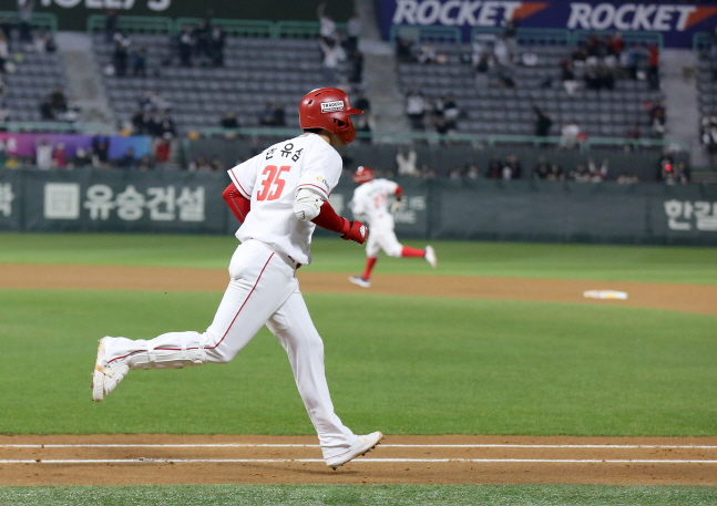 하지만 이 과정에서 문제가 발생했다. 타구를 빠르게 판단하지 못해 뒤늦게 전력질주를 한 최정의 표정이 어두웠다. 결국 3루를 밟은 뒤 김성현과 교체됐다. 구단 측에 따르면 오른쪽 햄스트링에 통증을 느낀 것으로 밝혀졌다. 병원으로는 이동하지 않고 상태를 지켜보기로 한 것은 불행 중 다행이었다.