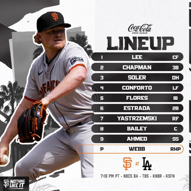 샌프란시스코는 이정후(중견수)-맷 채프먼(3루수)-호르헤 솔레어(지명타자)-마이클 콘포토(좌익수)-윌머 플로레스(1루수)-타이로 에스트라다(2루수)-마이크 야스트렘스키(우익수)-패트릭 베일리(포수)-닉 아메드(유격수) 순으로 나섰다. 선발 투수는 1선발 로건 웹.