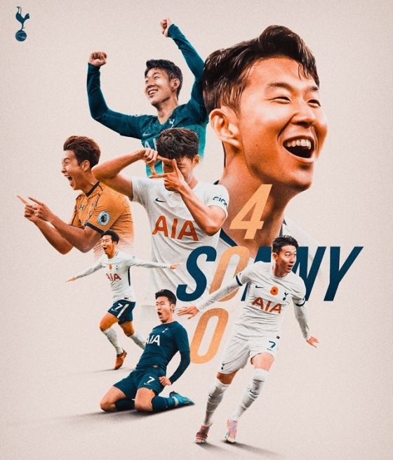 이를 비롯해 EPL 득점왕, 토트넘 주장 완장을 차고 동료들을 이끄는 모습 등이 담겼다. 토트넘 팬들도 "손흥민 축하해", "우리의 캡틴", "토트넘에서 400골까지 넣어줘" 등의 댓글을 남기며 축하 메시지를 남겼다.