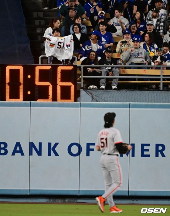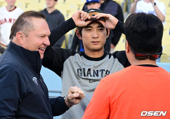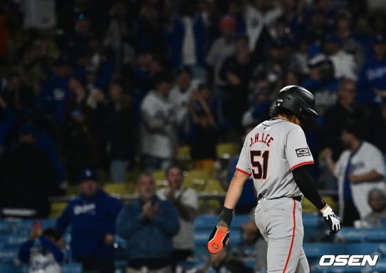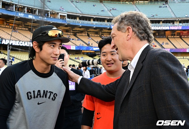 이날도 경기 전부터 다저스타디움에 많은 한국 팬들이 몰렸다. 래리 베어 샌프란시스코 자이언츠 구단주도 선수들을 직접 찾아 격려했고 이정후와도 만났다. 적응기도 없이 맹활약하는 슈퍼루키를 껴안으며 남다른 애정을 나타냈다.