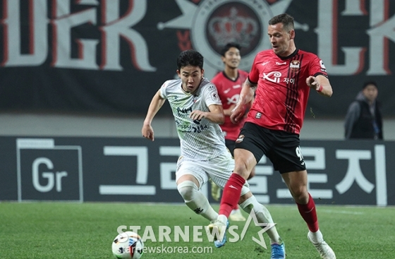 후반 초반 분위기는 김천이 쥐었다. 후반 3분 김민준이 문전에서 때린 슛을 최철원 골키퍼가 막아냈다. 이어 1분 뒤 김진규가 박스 바깥에서 때린 슛이 골문 왼편으로 살짝 벗어났다.