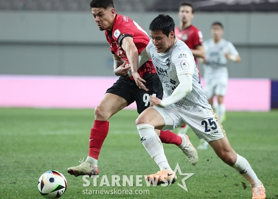 FC서울 윌리안이 김천상무 박승욱과 볼다툼을 하고 있다. /상암=김진경 기자 2024.04.03
