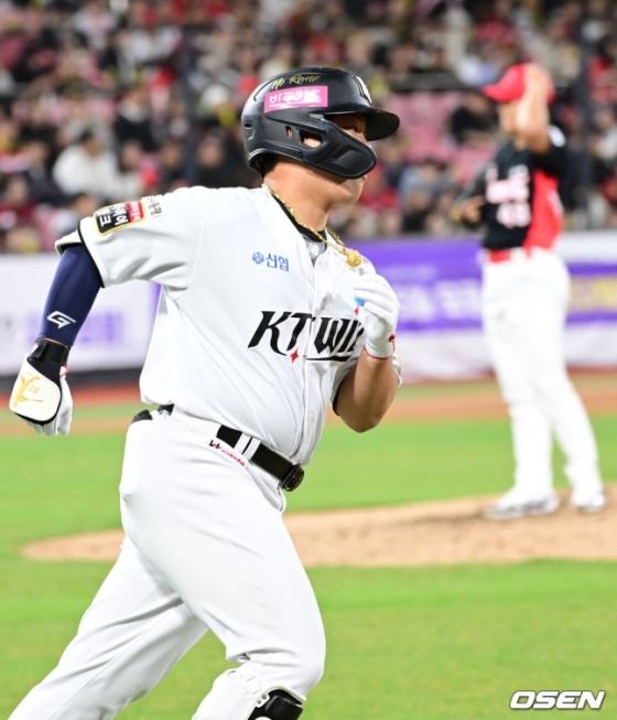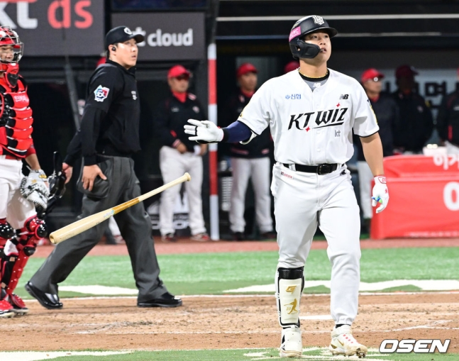 백미는 4회 초 두 번째 타석이었다. KT가 1-3으로 뒤진 4회 초 선두타자로 나서 몸쪽으로 빠르게 파고드는 이의리의 시속 143㎞ 빠른 볼을 그대로 후려쳐 우측 담장 밖으로 날려버렸다. 비거리 135m의 시즌 2호 포였다. 5회 말에는 바깥쪽으로 낮게 떨어지는 슬라이더를 기술적으로 걷어 올려 외야 중앙으로 향하는 타구를 만들었다. 그조차도 빨라 유격수 박찬호가 다이빙 캐치로 잡는 데 만족해야 했다. KT가 2-6으로 뒤진 7회 말 2사 1, 2루에서는 최지민의 초구 슬라이더를 가볍게 당겨쳐 우전 1타점 적시타로 연결했다. 4안타 경기를 완성하는 순간이었다.