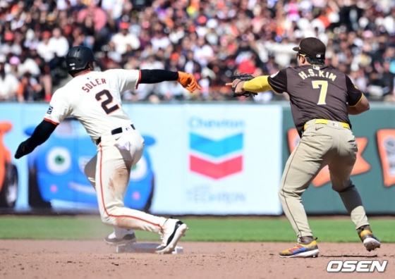 크로넨워스는 1루를 찍어 먼저 아웃카운트를 올린 뒤 병살을 위해 2루 베이스 커버를 들어간 김하성에게 공을 던졌다. 김하성은 2루를 향해 달려오는 솔레어를 태그하면서 3루를 견제하려 했다. 그러나 태그하려던 글러브가 솔레어와 부딪히며 공이 빠졌다. 그사이 피츠제럴드가 홈을 밟고 솔레어도 3루로 향하는 최악의 상황이 벌어졌다. 이후 채프먼이 우전 안타로 3루에 있던 솔레어를 불러들이면서 3-2 역전에 성공했다. 9회 초에도 샌디에이고 타자들이 이 점수를 만회하지 못하면서 김하성의 실책은 패배로 직결되는 최악의 선택으로 남았다.