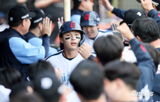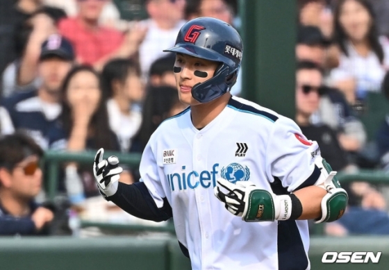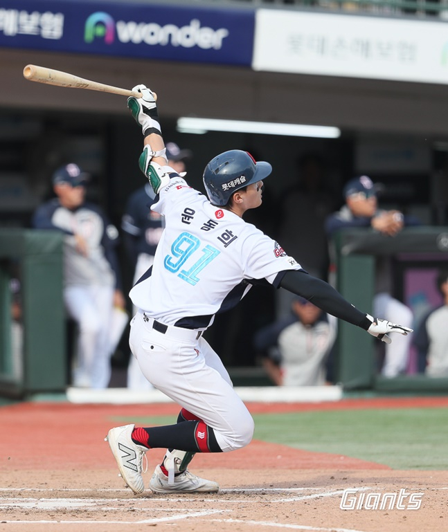 이에 앞서 윤동희는 팀을 한 차례 구한 수비를 펼쳤다. 7회 초 두산은 1사 후 8번 김대한이 배트가 부러지며 중견수 앞 안타성 타구를 날렸다. 그런데 중견수 윤동희가 몸을 날려 다이빙을 하며 이를 잡아냈다. 자칫하면 다시 실점할 수도 있던 상황에서 윤동희의 활약은 빛이 났다.