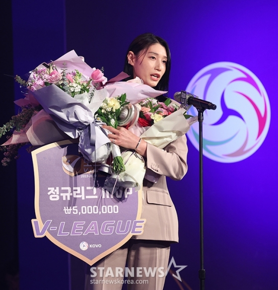 김연경은 "어릴 때 국내서 뛰었을때 받은 MVP보다 올해가 더 큰 의미로 다가오는 것 같다. 적지않은 나이에 최정상에 있다는 것 자체가 감사하고 함께했던 동료나 구단 관계자분들이 도와주셔서 가능했다. 다음 시즌에는 7번째 MVP에 도전할 수 있도록 하겠다"며 "기록적인 면은 올해가 더 괜찮은 것 같다. 올해 많이 힘들었는데 트레이너 선생님들이 각별히 챙겨주셨다. 긴 여정이었는데 잘 이겨낼 수 있도록 도와주셨고 많은 분들이 도와주신 만큼 다음 시즌에는 좋은 모습 보여드리겠다"고 각오를 밝혔다.