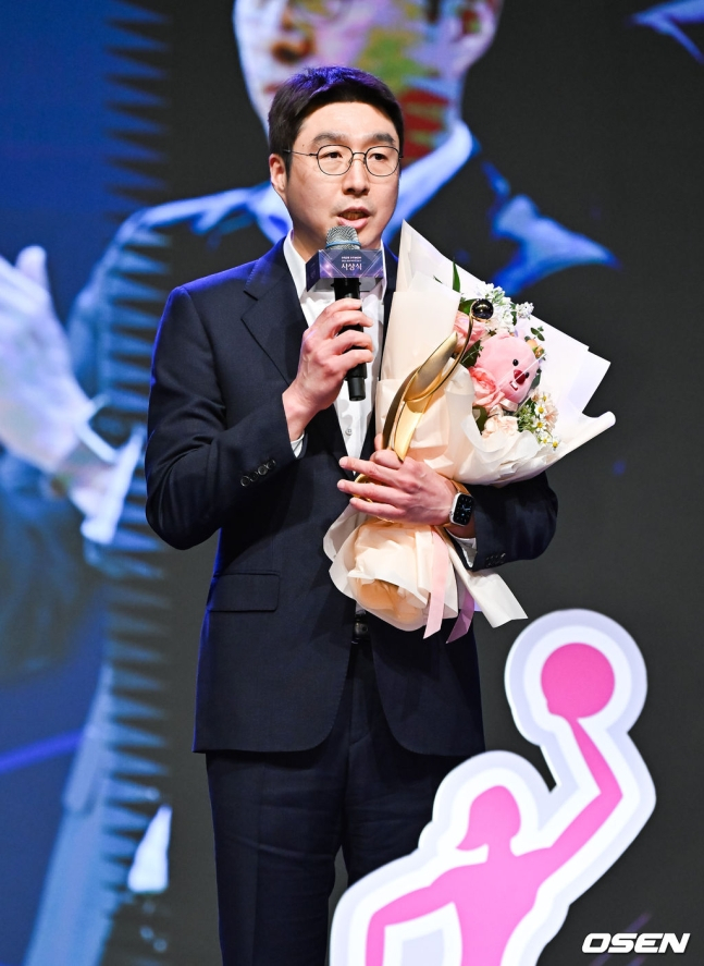 2023~2024 WKBL 시상식에서 지도상을 수상한 김완수 KB스타즈 감독.