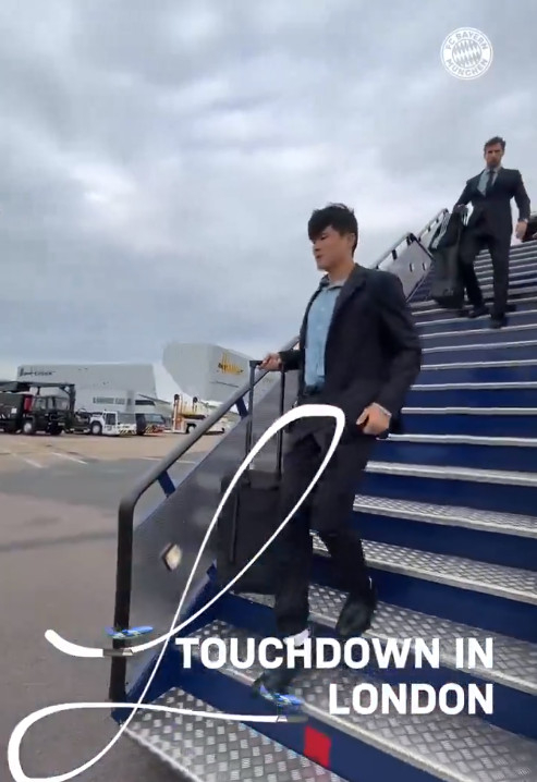 이어 뮌헨 선수단이 런던 공항에 도착한 모습이 공개됐다. 김민재가 캐리어를 들고 비행기에서 내리는 모습이 포착됐다.