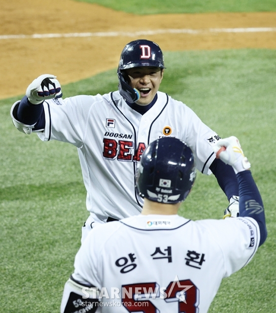 두산은 이날 정수빈(중견수)-허경민(3루수)-양의지(포수)-김재환(지명타자)-양석환(1루수)-강승호(2루수)-박준영(유격수)-김태환(우익수)-김태근(좌익수)으로 타선을 구성했다 선발 투수는 김동주.