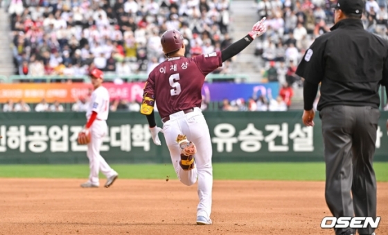 하지만 이재상의 표정에는 흔들림이 없었다. 커브와 체인지업을 모두 참아냈고 삼진을 잡으려 한복판으로 들어오는 시속 134㎞ 슬라이더를 통타해 랜더스필드 좌측 담장을 크게 넘겼다. 비거리 105m의 데뷔 첫 홈런.