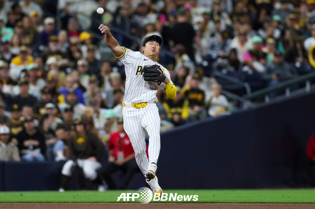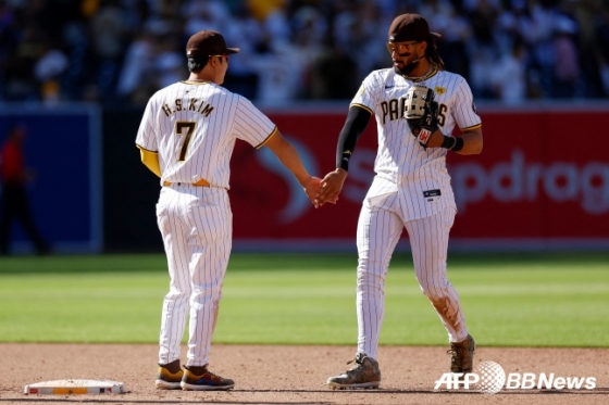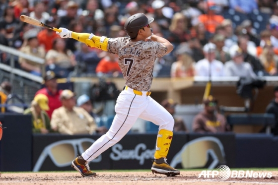 김하성은 팀이 9-2로 앞선 8회말 네 번째 타석을 맞이했다. 상대 투수는 여전히 팔렌시아. 김하성은 몸쪽으로 파고든 초구 싱커(97.5마일·156.9km)를 공략했으나 2루수 뜬공에 그치며 아쉬움을 삼켰다.