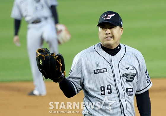 2회엔 김재환이 류현진의 초구 커브를 때렸지만 중견수 뜬공이 됐다. 강승호에겐 볼카운트 0-2에서 잇따라 커터를 던지더니 결정구 바깥쪽으로 낮게 떨어지는 체인지업으로 헛스윙 삼진을 잡아냈다.