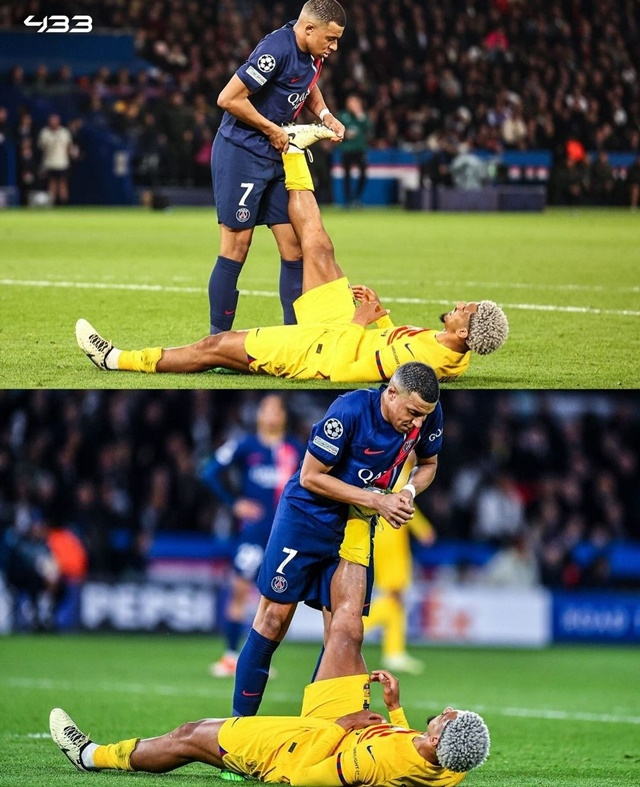 하지만 승패를 떠나 음바페가 끈끈한 동업자 정신을 발휘했다. 바르셀로나 센터백 로날드 아라우호가 경기 중 갑자기 쓰러졌다. 치열한 경기로 인해 다리에 경련이 일어났던 것이다. 그러자 음바페는 아라우호의 상태를 살폈다. 경련이 일어난 것을 확인하자 이를 풀어주려고 노력했다. 아라우호의 다리를 들어 꾹꾹 눌렀다. 다른 팀 선수인데도 도와준 음바페의 따뜻한 마음에 아라우호는 큰 부상 없이 90분 풀타임을 소화할 수 있었다.