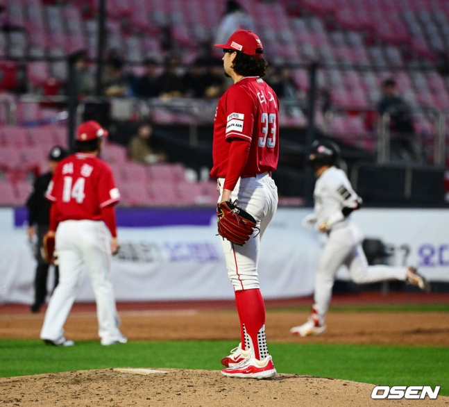 그러나 2회 다시 흔들리기 시작했다. 시작부터 다소 운이 없었다. 선두타자 안치영의 타구를 박성한이 잡아 1루로 잘 던졌으나, 오태곤이 그 공을 놓치면서 3루까지 진루했다. 정준영에게 볼넷을 내줬고 김상수에게 직구 위주의 승부를 겨뤘으나, 좌월 스리런포를 맞았다.