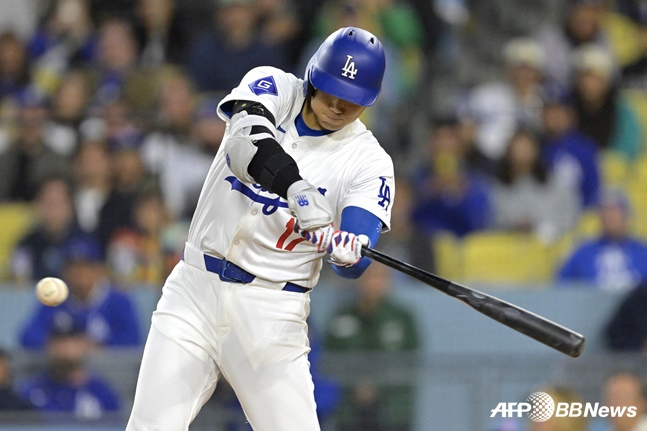 9회말 1사에서 타석에 선 오타니도 톰 코스그로브의 몸쪽 공을 때려봤으나 중견수 뜬공으로 물러났다.