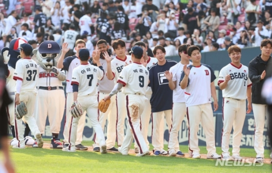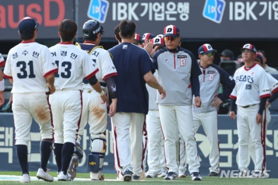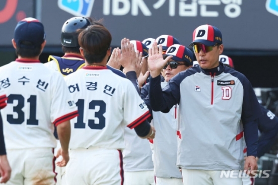 경기 후 '승장' 이승엽 감독은 "김동주가 그동안 잘던지고도 승리 투수와 인연이 없었는데, 오늘은 15개의 아웃카운트를 뚝심있게 책임지며 첫 승을 따냈다. 앞으로가 더 기대된다. 위기 상황에 등판한 김명신도 실점하지 않으며 상대 흐름을 끊었다"고 칭찬을 아끼지 않았다. 이어 "타선에서는 정수빈과 조수행 테이블 세터가 4출루 3득점을 합작하며 선봉장 역할을 해냈다. 캡틴 양석환도 추격하는 홈런포를 때려내며 중요한 역할을 해줬다. 박계범도 공수에서 값진 활약을 해줬다. 대타로 나와 단 한번의 스윙으로 귀중한 점수를 올린 김재환도 칭찬한다"면서 "추가점이 반드시 필요했던 순간에 2타점을 올린 양의지의 활약이 결정적이었다. 젊은 투수들을 잘 이끈 데다가 타선에서도 해결사 역할을 한 양의지에게 고생 많았다는 얘기를 전하고 싶다"고 말했다. 끝으로 이 감독은 "1루 관중석을 가득 채워준 팬 여러분들께 한 주의 마무리를 위닝 시리즈로 안겨드릴 수 있어 만족스럽다. 뜨거운 함성에 늘 감사드린다"고 인사했다.