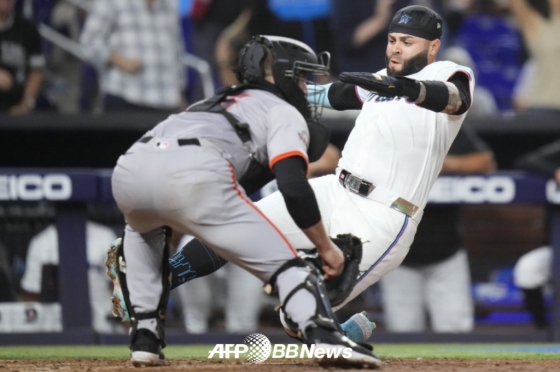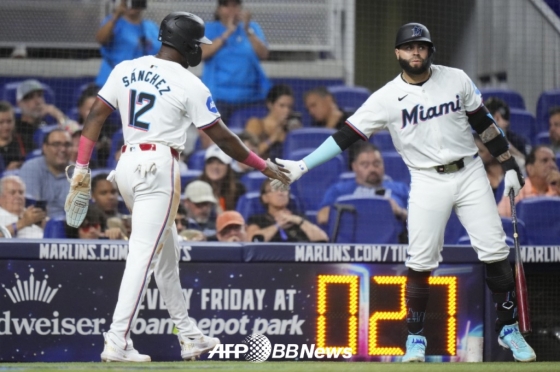 마이애미는 4회말 곧바로 승부를 2-2 원점으로 돌렸다. 선두타자 아라에즈가 중전 2루타를 친 뒤 1사 후 데 라 크루즈가 좌전 적시 2루타를 작렬시켰다.(2-1) 계속해서 후속 조쉬 벨 타석 때 3루 도루에 성공한 데 라 크루즈. 벨이 볼넷으로 출루한 가운데, 산체스의 유격수 땅볼을 틈타 득점을 올렸다.(2-2)