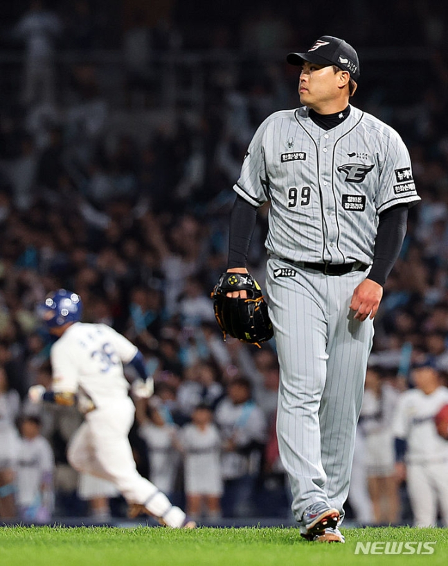 이후 NC 타선은 류현진에게 7회까지 다시 침묵을 이어갔다. 이어 셋업맨 한재승이 8회 초 1사 후 김태연의 안타와 내야 땅볼에 이어 황영묵에게 중전 적시타를 맞아 3-3 동점이 됐다.