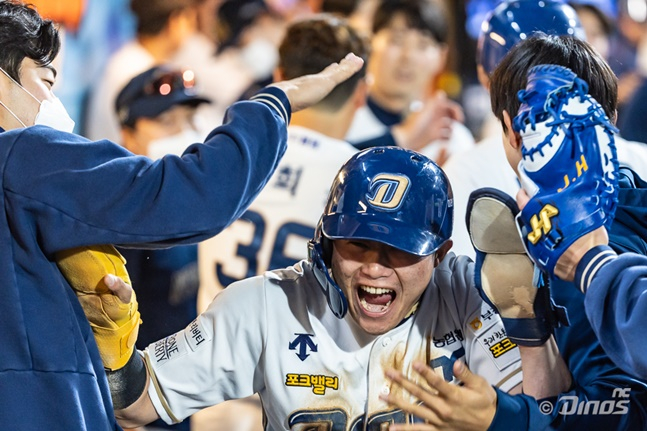 NC는 8회 말 류현진이 내려간 후 다시 꿈틀댔다. 그리고 이 과정에서 최정원의 역할이 컸다. 투수가 장시환으로 바뀐 가운데, 최정원은 8번 김수윤 타석에서 대타로 출전했다. 변화구를 잘 골라낸 최정원은 풀카운트에서 결국 볼넷을 골라나가 1루로 살아나갔다.