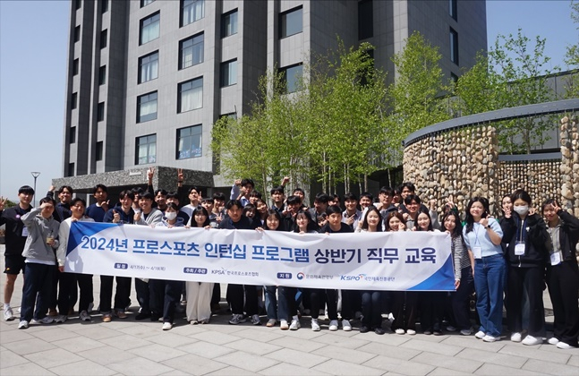 한국프로스포츠협회(회장 김원섭)는 17~18일 경기도 양평군 소재 교육장에서 '2024년 프로스포츠 인턴십 프로그램 상반기 직무 교육'을 개최했다고 밝혔다.