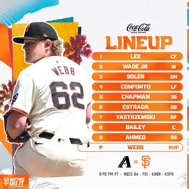 샌프란시스코는 이날 이정후(중견수)-라몬테 웨이드 주니어(1루수)-호르헤 솔레어(지명타자)-마이클 콘포토(좌익수)-맷 채프먼(3루수)-타이로 에스트라다(2루수)-마이크 야스트렘스키(우익수)-패트릭 베일리(포수)-닉 아메드(유격수)로 타순을 꾸렸다. 선발 투수는 1선발 로건 웹.
